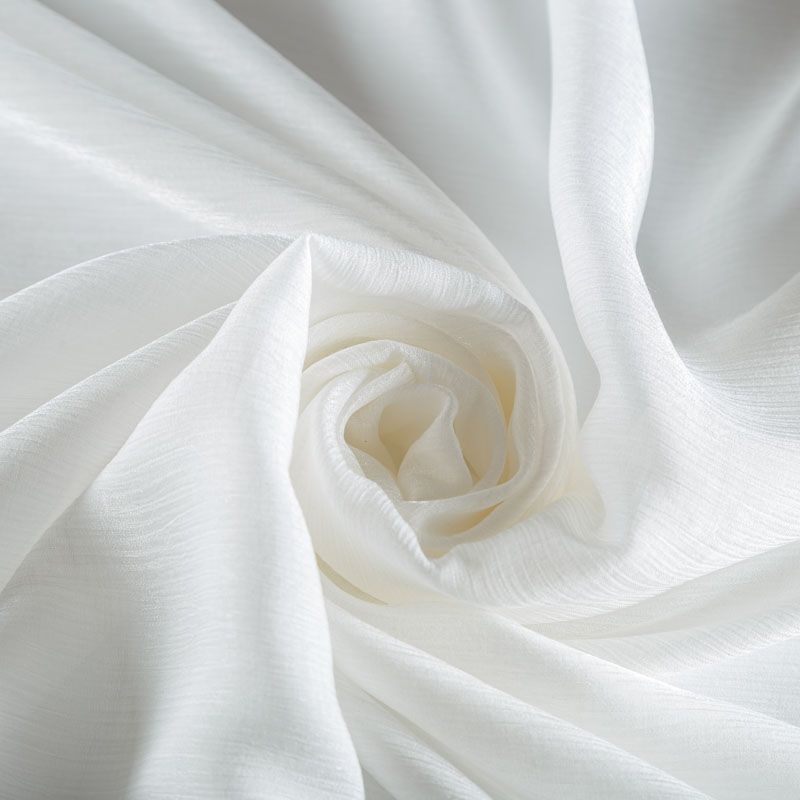 Воздушная жатая ткань, легкая, тонкая, полупрозрачная. Не тянется и хорошо сохраняет форму. На ощупь шифон-жатка очень мягкий и приятный. Подойдет для пошива тончайших воздушных блуз, изумительных вечерних и летних платьев в пол, коротких коктейльных платьев, топов, блузок, туник и элегантных шарфов.
