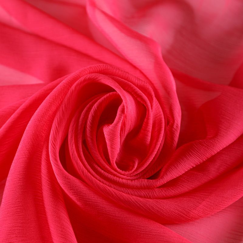 Воздушная шелковая жатая ткань, легкая, тонкая, полупрозрачная. На ощупь шифон-жатка очень мягкий и приятный, не тянется. Подойдет для пошива тончайших воздушных блуз, изумительных вечерних и летних платьев в пол, коротких коктейльных платьев, топов, блузок, туник и элегантных шарфов.