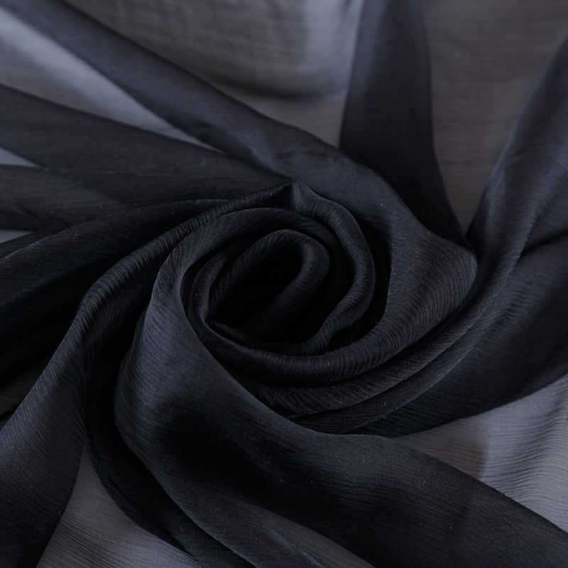 Воздушная шелковая жатая ткань, легкая, тонкая, полупрозрачная. На ощупь шифон-жатка очень мягкий и приятный, не тянется. Подойдет для пошива тончайших воздушных блуз, изумительных вечерних и летних платьев в пол, коротких коктейльных платьев, топов, блузок, туник и элегантных шарфов.