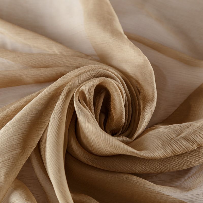 Воздушная шелковая жатая ткань, легкая, тонкая, полупрозрачная. На ощупь шифон-жатка очень мягкий и приятный, не тянется. Подойдет для пошива тончайших воздушных блуз, изумительных вечерних и летних платьев в пол, коротких коктейльных платьев, топов, блузок, туник и элегантных шарфов.