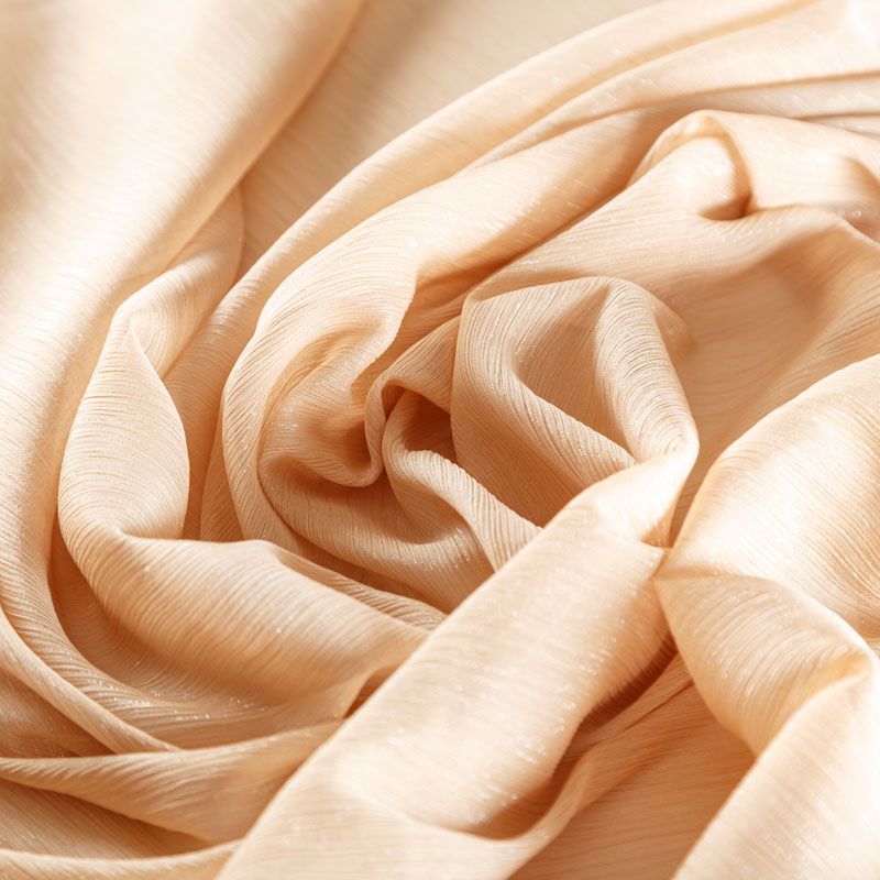 Воздушная жатая ткань с прозрачной люрексной нитью, легкая, тонкая, полупрозрачная. Не тянется и хорошо сохраняет форму. На ощупь шифон-жатка очень мягкий и приятный. Подойдет для пошива тончайших воздушных блуз, изумительных вечерних и летних платьев в пол, коротких коктейльных платьев, топов, блузок, туник и элегантных шарфов.