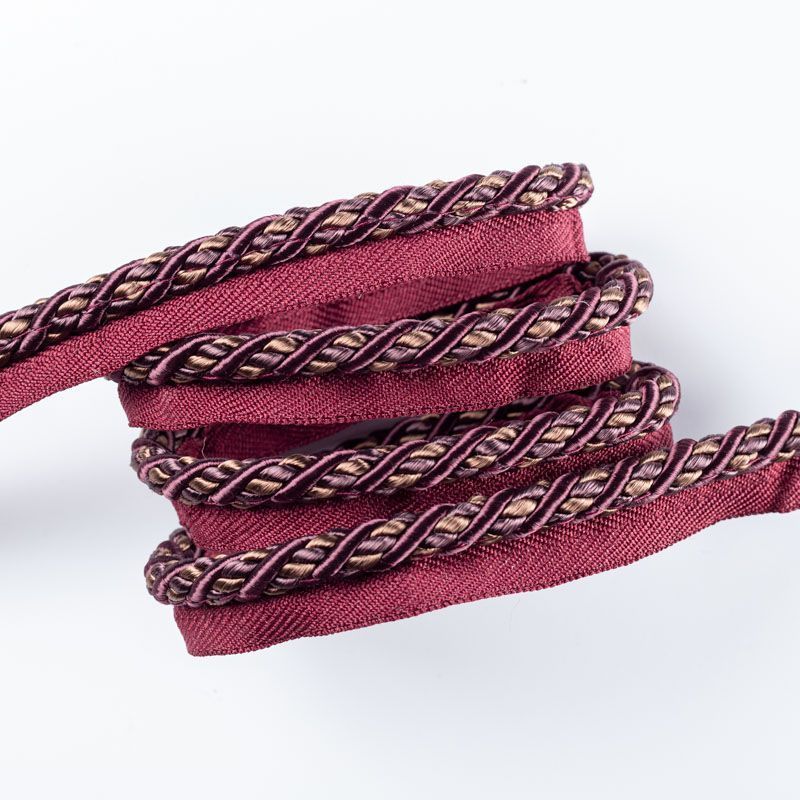 Декоративный витой круглый шнур, снабженый тесьмой для втачивания в стыковочный шов изделия. Применяется для отделки мягкой мебели, чехлов, декорирования домашнего текстиля, штор, покрывал, подушек. Позволяет изделию сохранять форму, образуя каркас. Диаметр шнура - 8 мм. Общая ширина шнура с тесьмой - 2 см.