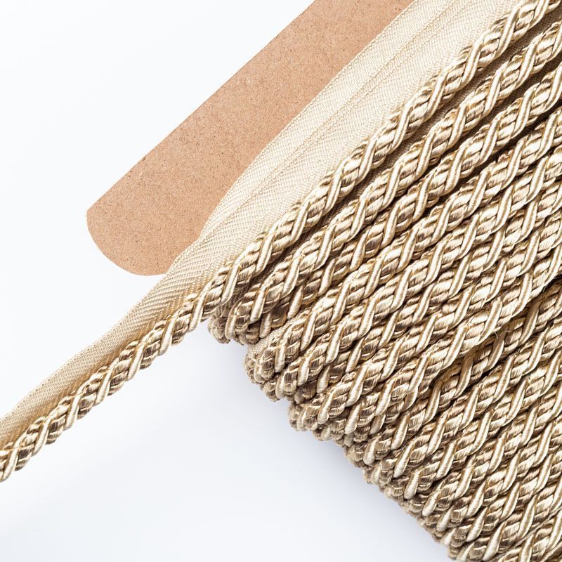 Декоративный витой круглый шнур, снабженый тесьмой для втачивания в стыковочный шов изделия. Применяется для отделки мягкой мебели, чехлов, декорирования домашнего текстиля, штор, покрывал, подушек. Позволяет изделию сохранять форму, образуя каркас. Диаметр шнура - 8 мм. Общая ширина шнура с тесьмой - 2 см.