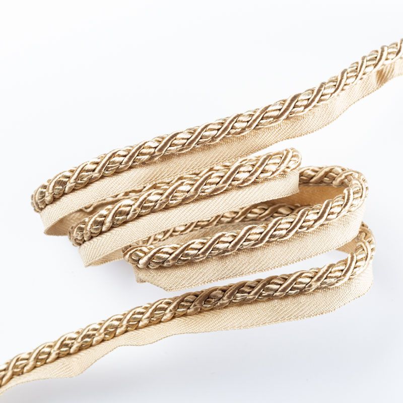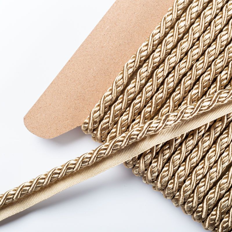 Декоративный витой круглый шнур, снабженый тесьмой для втачивания в стыковочный шов изделия. Применяется для отделки мягкой мебели, чехлов, декорирования домашнего текстиля, штор, покрывал, подушек. Позволяет изделию сохранять форму, образуя каркас. Диаметр шнура - 8 мм. Общая ширина шнура с тесьмой - 2 см.