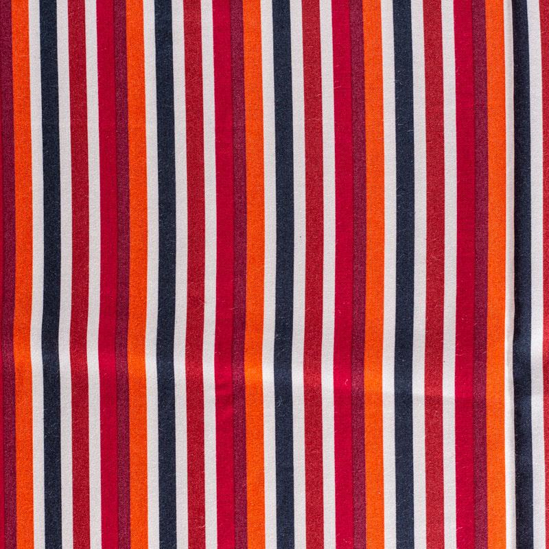 Плательно-блузочный штапель в вертикальную полоску в терракотово-красных тонах на белом фоне. Мягкий, тонкий, нежный, пластичный, приятный на ощупь, хорошо драпируется, практичный. Подойдет для пошива платья, топа, блузки, рубашки, юбки, летних брюк.