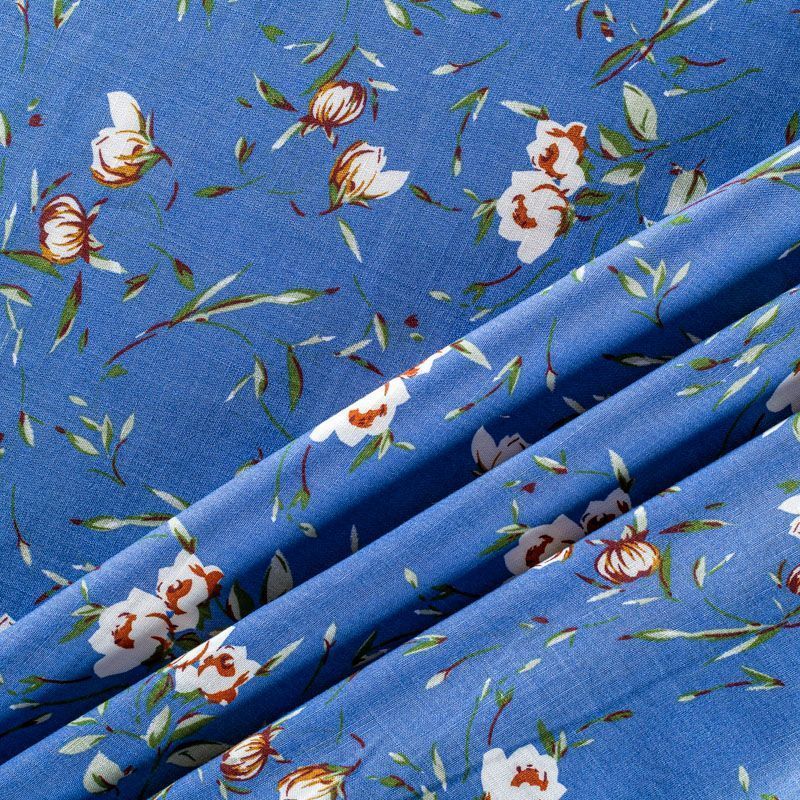 Плательно-блузочный штапель с цветочным принтом на темно-голубом фоне. Мягкий, тонкий, нежный, пластичный, приятный на ощупь, хорошо драпируется, практичный. Подойдет для пошива платья, топа, блузки, рубашки, юбки, летних брюк.