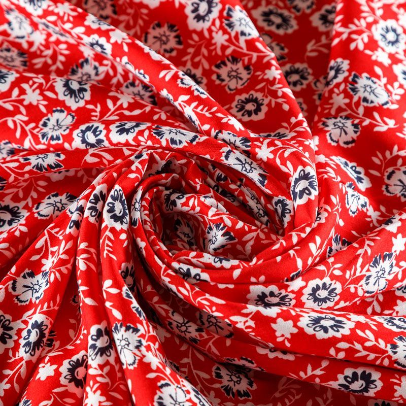 Плательно-блузочный штапель с не крупным цветочным принтом на красном фоне. Мягкий, тонкий, нежный, пластичный, приятный на ощупь, хорошо драпируется, практичный. Подойдет для пошива платья, топа, блузки, рубашки, юбки, летних брюк.