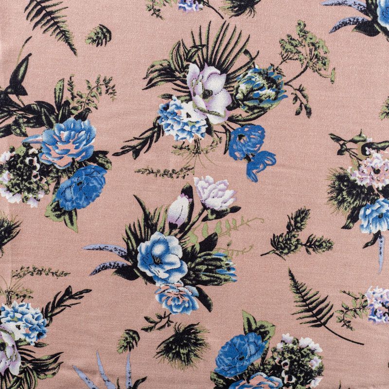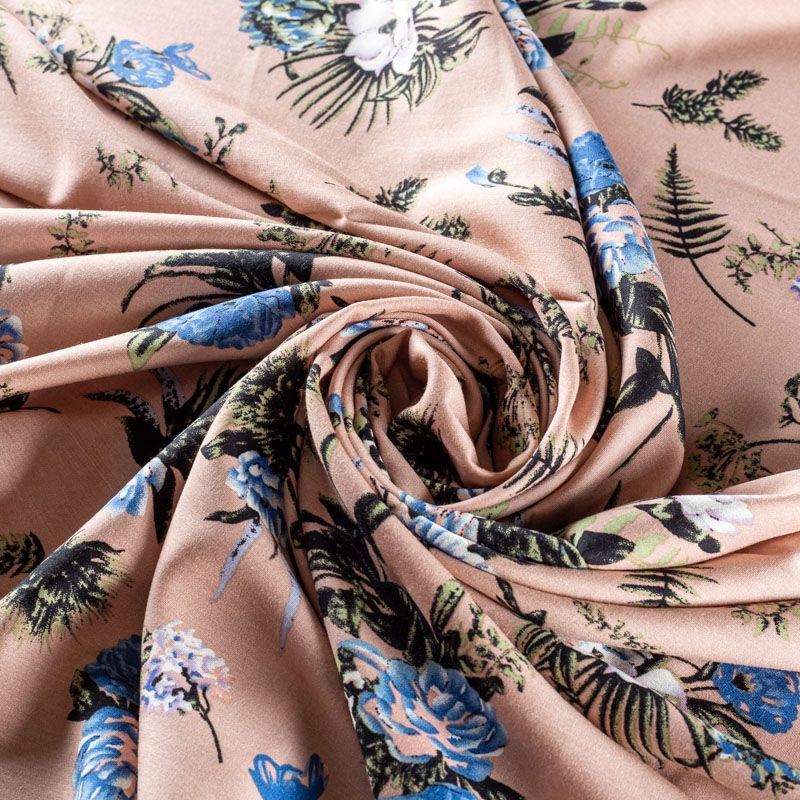 Плательно-блузочный штапель с цветочным принтом на бежевом фоне. Мягкий, тонкий, нежный, пластичный, приятный на ощупь, хорошо драпируется, практичный. Подойдет для пошива платья, топа, блузки, рубашки, юбки, летних брюк.