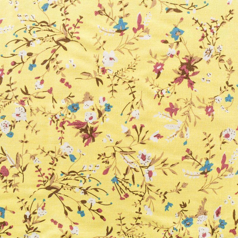 Плательно-блузочный штапель с цветочным принтом на желтом фоне. Мягкий, тонкий, нежный, пластичный, приятный на ощупь, хорошо драпируется, практичный. Подойдет для пошива платья, топа, блузки, рубашки, юбки, летних брюк.