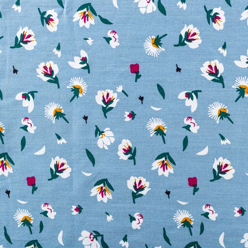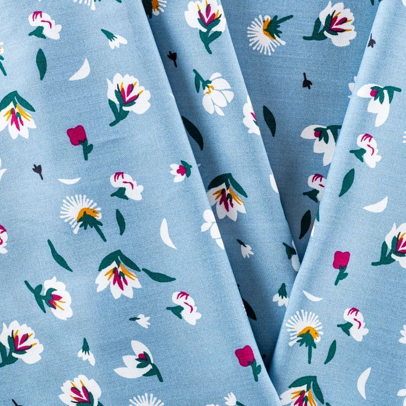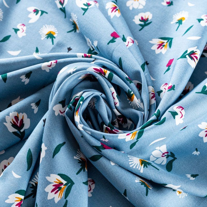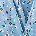 Плательно-блузочный штапель с цветочным принтом на серо-голубом фоне. Мягкий, тонкий, нежный, пластичный, приятный на ощупь, хорошо драпируется, практичный. Подойдет для пошива платья, топа, блузки, рубашки, юбки, летних брюк.