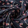 Плательно-блузочный штапель черного оттенка с принтом известного бренда. Ткань мягкая, тонкая, нежная, пластичная, приятная на ощупь, хорошо драпируется, практичная, поверхность слегка фактурная. Подойдет для пошива платья, топа, блузки, рубашки, юбки, летних брюк.