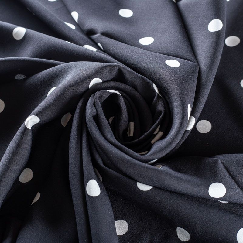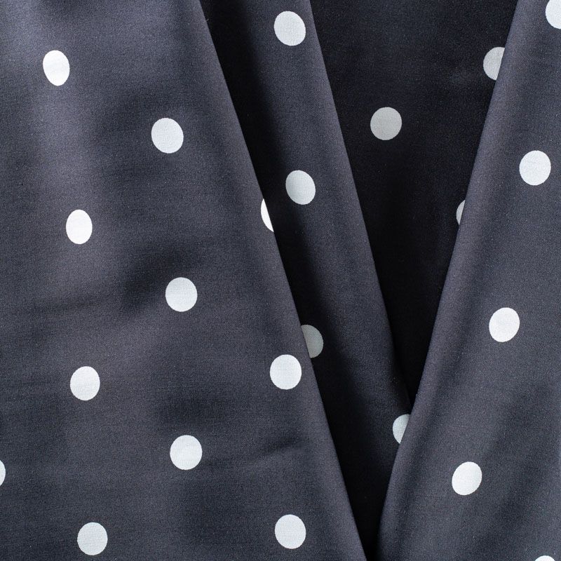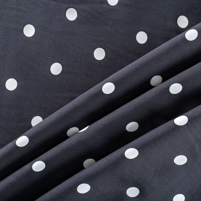Плательно-блузочный штапель в белый горох на черном фоне. Ткань мягкая, тонкая, нежная, пластичная, приятная на ощупь, хорошо драпируется, практичная. Подойдет для пошива платья, топа, блузки, рубашки, юбки, летних брюк.