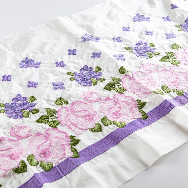 Вышивка на тафте Monnalisa высочайшего качества. Тафта белого цвета тонкая, но плотная, отлично держит форму, драпируется красивыми жесткими складками и загибами. Фактура гладкая, с матовым блеском. Богатая объемная цветочная вышивка выполнена в нежных пастельных оттенках. Подойдет как для самостоятельного изделия: юбка, ярусное платье, плащ, парка, так и для декорирования любых изделий: вставка в рукав, оборка, кокетка и т.д.