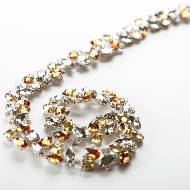 Декоративная тесьма на жесткой основе со стразами используется для декора и отделки одежды, создания украшений и т.д.