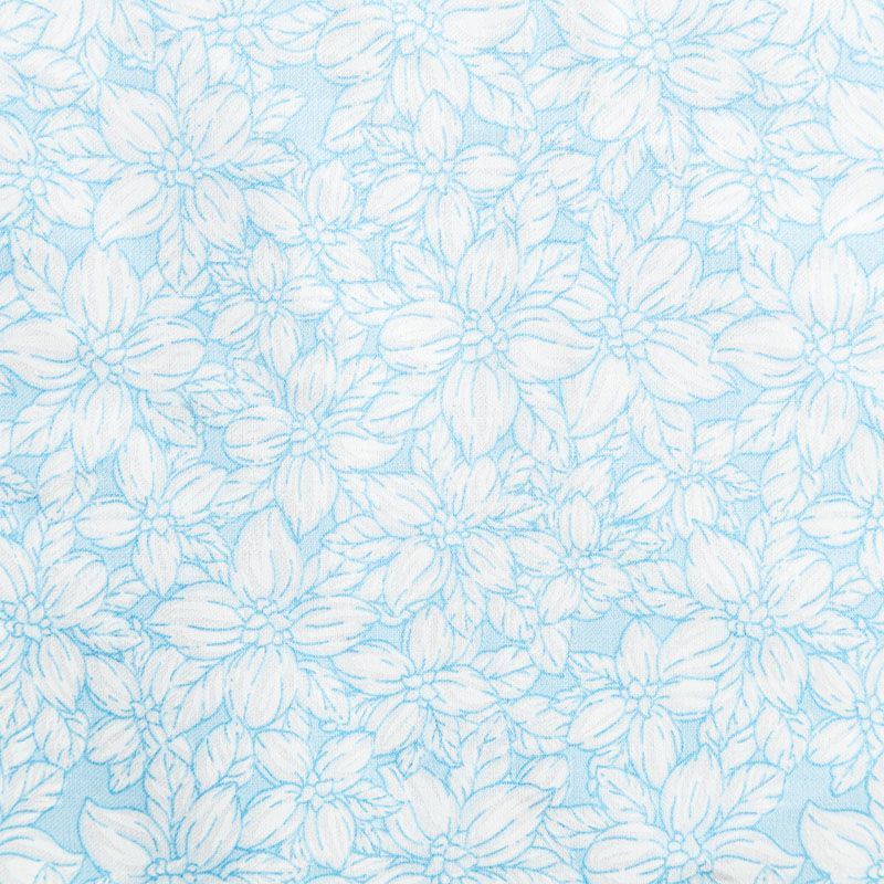 Тик приятного голубого оттенка с нежным цветочным принтом средней плотности. Используется для пошива наперников. Износостойкий, может использоваться для изготовления других изделий. Ткань подходит для любых наполнителей, искусственных и натуральных.