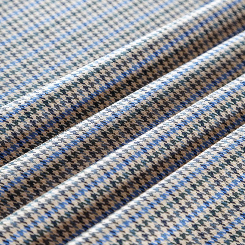 Итальянская костюмно-плательная шерсть средней плотности в актуальном бежевом оттенке с классическим узором гусиная лапка в черно-синиих цветах. Поверхность ткани имеет выраженное диагональное плетение, на ощупь гладкая, полированная благодаря содержанию шерсти ламы. Ткань очень мягкая, теплая, уютная, шерсть не колется, в носке очень комфортная. Подойдет для пошива стильного костюма, мужского пиджака, платья, жакета, юбки, шорт или легкого пальто для осенне-весеннего сезона.