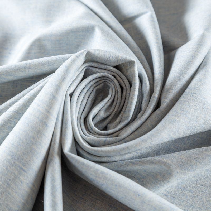 Итальянская костюмно-плательная шерсть в молочно-голубом оттенке. Ткань средней плотности, пластичная, очень приятная на ощупь, драпируется в слегка держащие форму складки, с полотняным переплетением, тянется за счет эластана в составе. Подойдет для всех видов изделий - платьев, сарафанов, модных жакетов, жилетов, брючных и юбочных костюмов, кюлотов, брюк-палаццо, юбок различных фасонов.