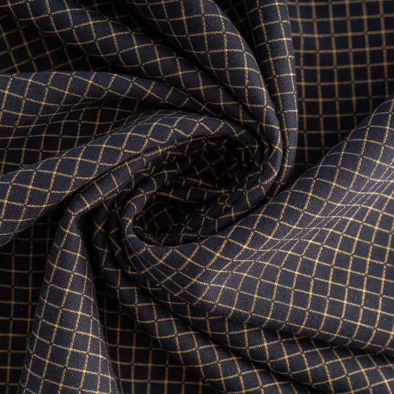 Оригинальная двухсторонняя ткань с принтом клетка с одной стороны и мелким геометрическим рисунком в виде бежевых точек - с другой. Материал плотный, но не толстый, хорошо драпируется, имеет мягкую поверхность с небольшими ворсинками. Прекрасно подходит для пошива платьев, сарафанов, юбок, брюк, жакетов.