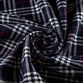 Ткань средней плотности, мягкая и приятная на ощупь, немного тянется, формоустойчива, хорошо драпируется и образует мягкие складки. Сочетание линий белого и красного цветов на темно-синем фоне образует сложную красивую клетку. Ткань отлично подойдет на костюмы, юбки, брюки, платья, жакеты, для школьной формы.