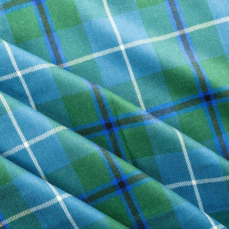 Итальянская костюмная шотландка средней плотности, мягкая и приятная на ощупь, формоустойчива, хорошо драпируется и образует мягкие складки. Сочетание линий синего, зеленого, молочного и черного цветов образует сложную красивую клетку. Ткань отлично подойдет на костюмы, юбки, брюки, платья, жакеты, для школьной формы.