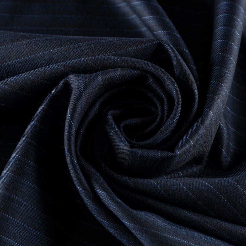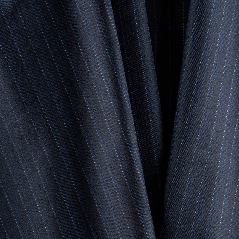 Ткань костюмная К32-012 темно-синий тонкая ярко-голубая полоска