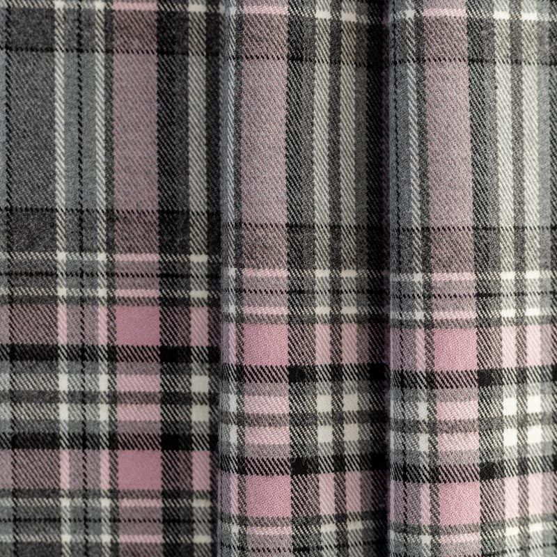 Плотная, но мягкая и приятная на ощупь костюмно-плательная шотландка, немного тянется, формоустойчива, не мнется, хорошо драпируется и образует мягкие складки. Сочетание линий черного, розового и белого цветов образует сложную красивую клетку. Ткань отлично подойдет на костюмы, юбки, брюки, платья, жакеты, для школьной формы.