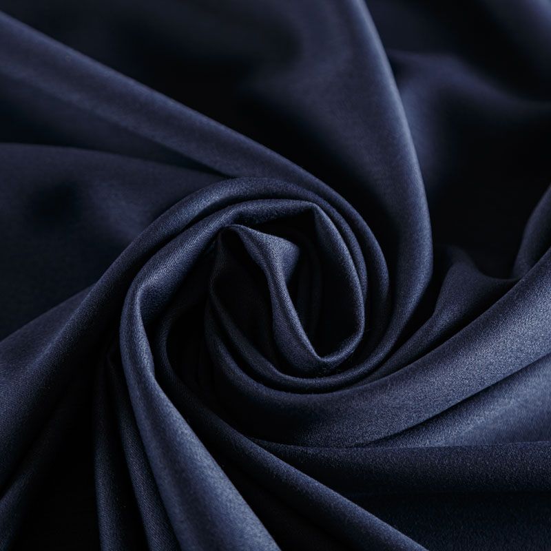 Костюмно-плательная ткань темно-синего оттенка с шероховатой поверхностью, упругая, практически не мнется, отлично сохраняет форму изделия, достаточно мягкая, пластичная, хорошо тянется за счет эластана в составе. Подойдет для пошива костюмов, брюк, юбки, платья, комбинезона.