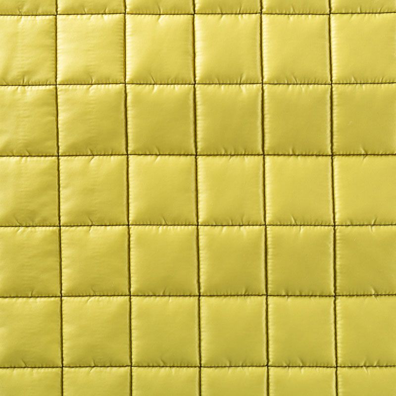 Трехслойная итальянская курточная ткань желто-зеленого оттенка, простеганная не крупными квадратами. Нижний слой черного цвета, заменяет подклад, средний слой - синтепон, верхний слой - матовый полиэстер, напоминающий болонь. Ткань легкая, пластичная, хорошо держит форму. Прекрасно подойдет для  пошива легких пальто, курток, бомберов, жилетов, накидок-кейпов, объемных сумок, одежды для домашних питомцев, туристического снаряжения.