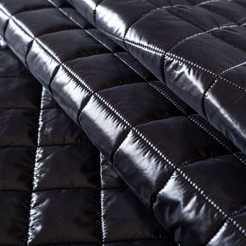 Двухслойная курточная ткань черного цвета хаки, простеганная не крупными квадратам. Нижний слой - синтепон, верхний - полиэстер, по качеству напоминает болонь. Очень мягкая и легкая, пластичная, хорошо драпируется. Прекрасно подойдет для  пошива легких пальто, курток, жилетов, накидок-кейпов, объемных сумок.