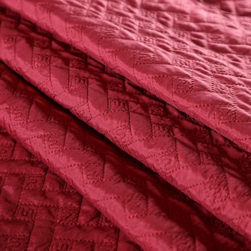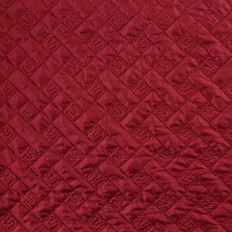 Двухслойная курточная тканьбордового оттенка, с геометрической стежкой нитками в тон полотну. Нижний слой - синтепон, верхний -  полиэстер, по качеству напоминает болонь. Ткань легкая, пластичная, хорошо драпируется. Прекрасно подойдет для  пошива пальто, курток, жилетов, накидок-кейпов, объемных сумок, одежды для домашних питомцев, туристического снаряжения.