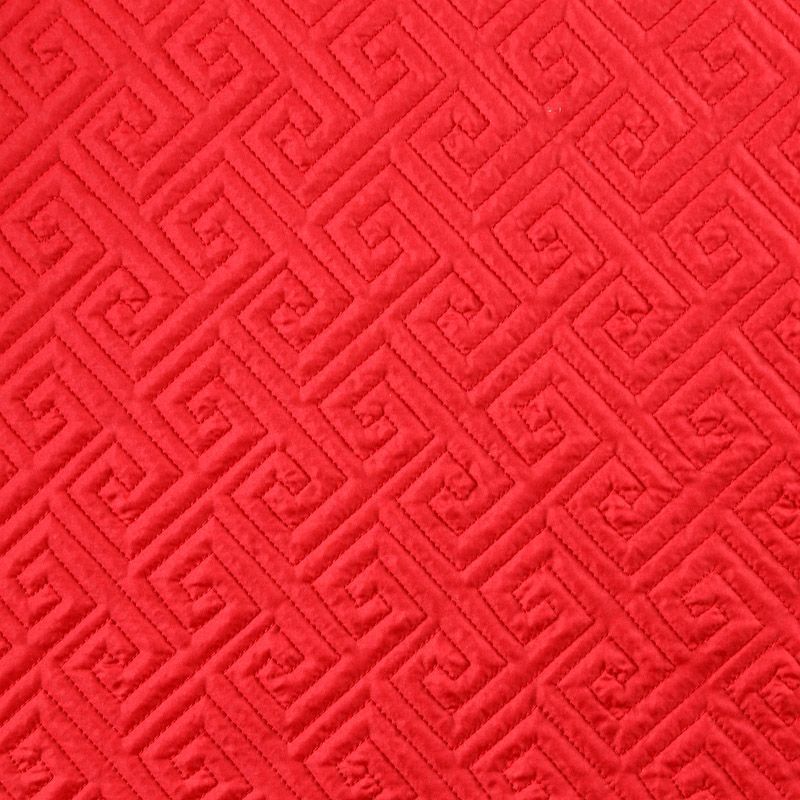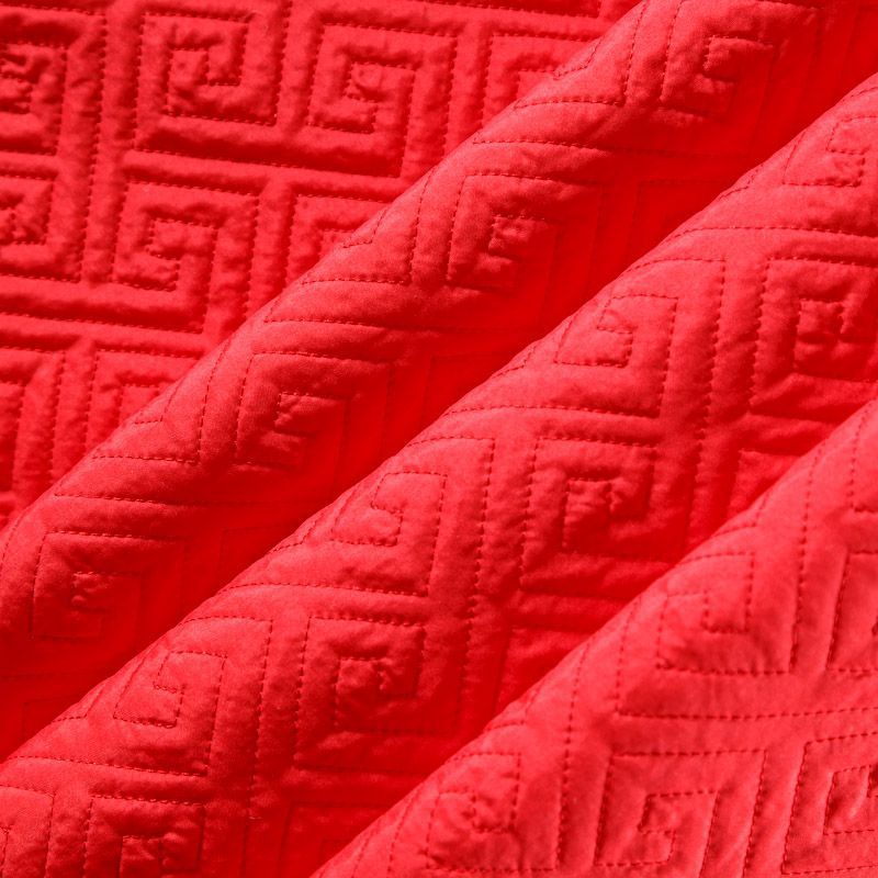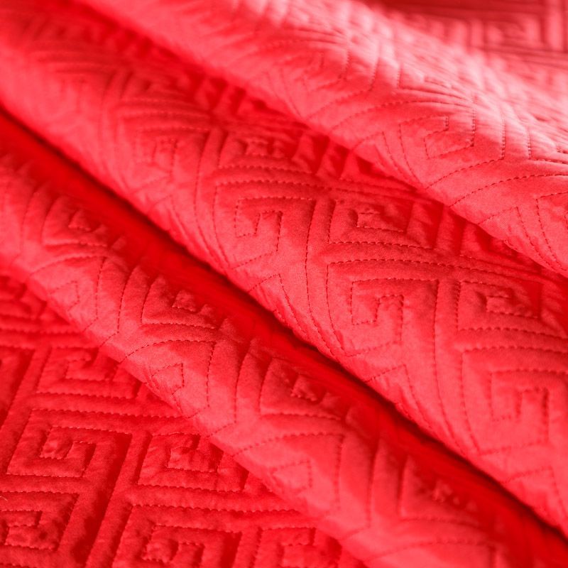 Двухслойная курточная ткань красного оттенка, с геометрической стежкой нитками в тон полотну. Нижний слой - синтепон, верхний -  полиэстер, по качеству напоминает болонь. Ткань легкая, пластичная, хорошо драпируется. Прекрасно подойдет для  пошива пальто, курток, жилетов, накидок-кейпов, объемных сумок, одежды для домашних питомцев, туристического снаряжения.