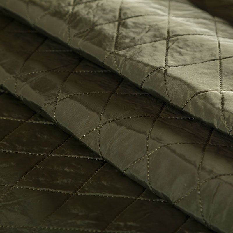 Двухслойная курточная ткань зеленого оттенка, простеганная не крупными ромбами. Нижний слой - синтепон, верхний - полиэстер, по качеству напоминает болонь. Очень мягкая и легкая, пластичная, хорошо драпируется. Прекрасно подойдет для  пошива легких пальто, курток, жилетов, накидок-кейпов, объемных сумок.