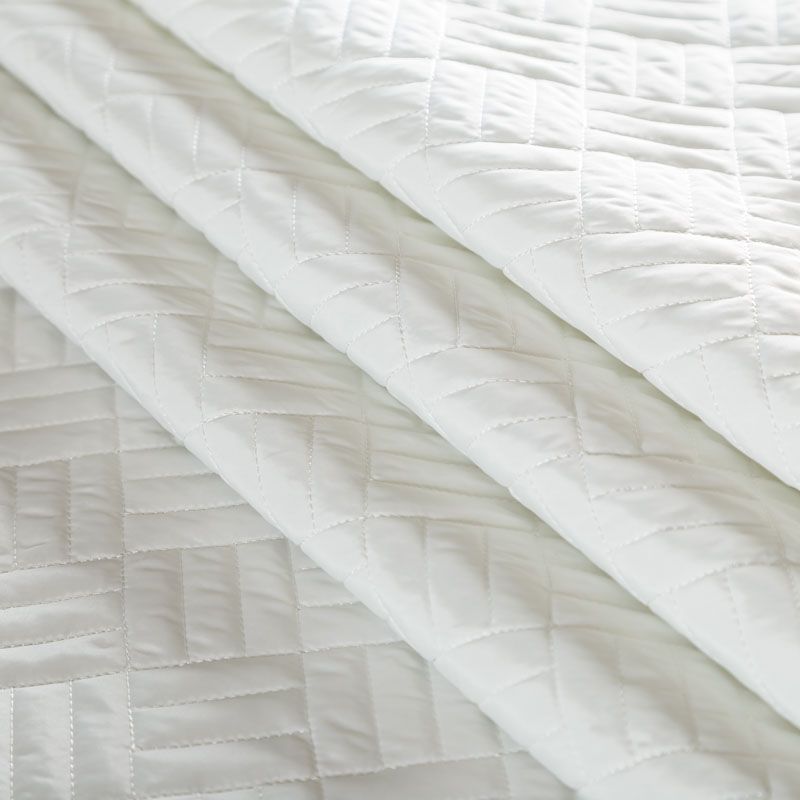 Двухслойная курточная ткань молочного оттенка, простеганная фигурной вышивкой нитками в тон. Нижний слой - синтепон, верхний - плотный матовый полиэстер. Очень мягкая и легкая, пластичная, хорошо драпируется. Прекрасно подойдет для  пошива легких пальто, курток, жилетов, накидок-кейпов, объемных сумок.