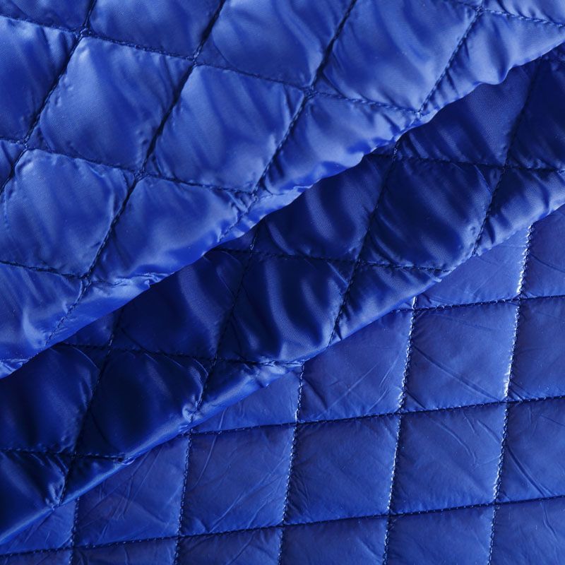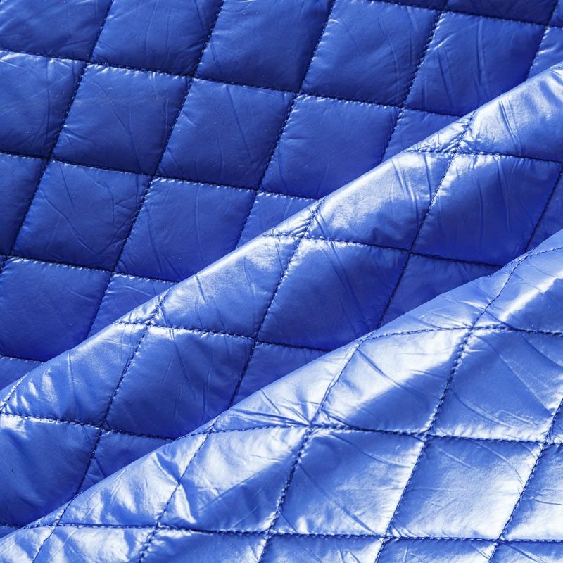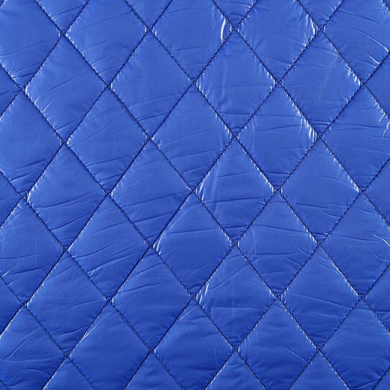 Трехслойная курточная стежка ярко-синего цвета, простеганная не крупными ромбами. Верхний слой - полиэстер, по качеству напоминающий болонь, средний слой - синтепон, нижний слой - подкладочная ткань в тон лицевой. Очень мягкая и легкая, пластичная, хорошо драпируется. Прекрасно подойдет для пошива легких пальто, курток, жилетов, накидок-кейпов, объемных сумок.