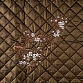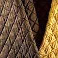 Курточный купон на синтепоне и подкладке, простеганный не крупными ромбами размером 3,5х3,5 см. С лицевой стороны тонкая, но прочная плащевая ткань с вышивкой в виде цветущей ветки сакуры, с изнаночной - однотонная ткань желтого цвета. Материал мягкий, объемный и "воздушный", хорошо держит форму и подойдет для пошива легких пальто, курток, жилетов, накидок-кейпов, парки.
