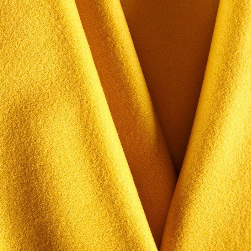 Пальтовая итальянская шерсть в красивом шафрановом оттенке. Ткань плотная, достаточно теплая, комфортная для одежды на сезон осень-зима. Полотно имеет короткий ворс. Мягкое и нежное на ощупь, не толстое и не тяжелое, хорошо держит форму. Прекрасно подойдет для пошива женских пальто, теплых костюмов, кейпов, мягких бомберов, жилетов и головных уборов.