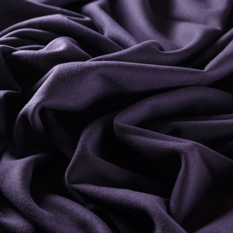 Итальянская пальтовая шерсть в темно-фиолетовом оттенке. Ткань мягкая, пластичная, приятная на ощупь, гибкая, средней толщины, при этом высокой плотности. Поверхность имеет короткий ворс. Подойдет для пошива пальто, куртки, жакета, парки, кейпа, жакета или пончо.