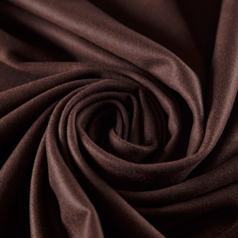 Пальтовая итальянская шерсть в шоколадном оттенке. Ткань плотная, достаточно теплая, комфортная для одежды на сезон осень-зима, не толстая и не тяжелая, хорошо держит форму, приятная на ощупь. Поверхность имеет диагональное твиловое плетение. Прекрасно подойдет для пошива женских пальто, теплых костюмов, кейпов, мягких бомберов, жилетов и головных уборов.