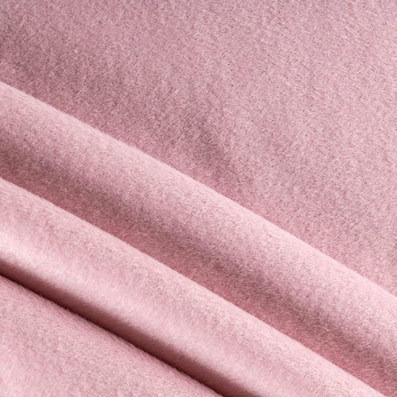 Пальтовая итальянская шерсть в холодном розовом оттенке. Ткань плотная, достаточно теплая, комфортная для одежды на сезон осень-зима. Полотно имеет короткий ворс. Мягкое и нежное на ощупь, не толстое и не тяжелое, хорошр держит форму. Прекрасно подойдет для пошива женских пальто, теплых костюмов, кейпов, мягких бомберов, жилетов и головных уборов.