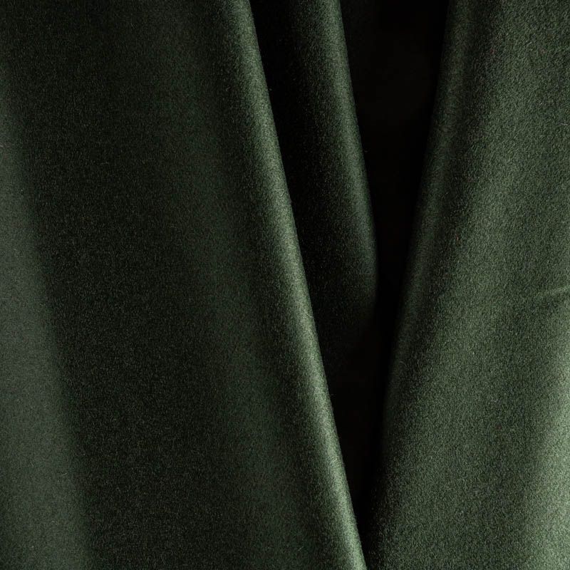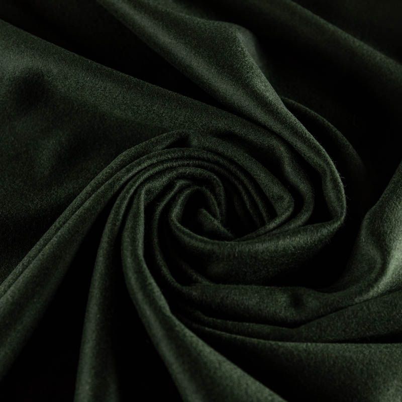 Пальтовая итальянская шерсть с кашемиром в оттенке зеленой хвои. Ткань плотная, достаточно теплая, комфортная для одежды на сезон осень-зима. Полотно имеет короткий ворс. Мягкое и нежное на ощупь, не толстое и не тяжелое, хорошр держит форму. Прекрасно подойдет для пошива женских пальто, теплых костюмов, кейпов, мягких бомберов, жилетов и головных уборов.