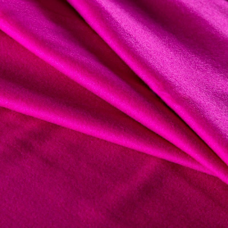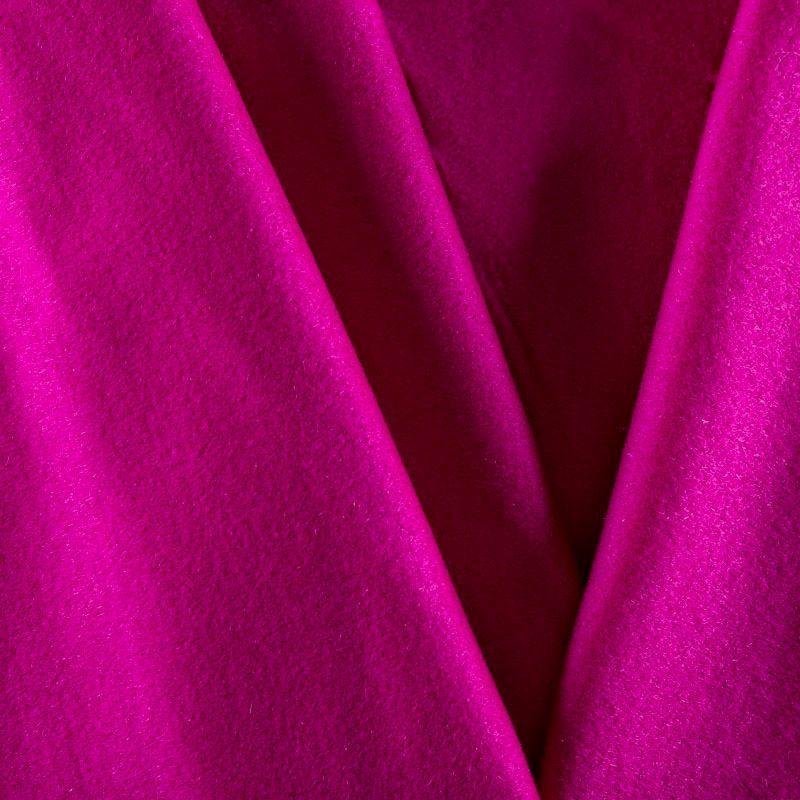 Пальтовая итальянская шерсть с добавлением кашемира в ярком оттенке фуксии. Ткань плотная, достаточно теплая, комфортная для одежды на сезон осень-зима. Полотно имеет короткий ворс, мягкое и нежное на ощупь, не толстое и не тяжелое, хорошо держит форму. Прекрасно подойдет для пошива женских пальто, теплых костюмов, кейпов, мягких бомберов, жилетов и головных уборов.
