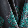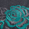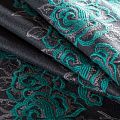 Пальтовая ткань из натуральной шерсти графитового оттенка с объемной цветочной вышивкой изумрудного цвета вдоль кромки,  для пошива изделия набирается объемом. Ткань хорошей плотности, отлично держит форму, не деформируется, приятная на ощупь. Прекрасно подойдет для пошива ориганального пальто, жилета, теплой юбки или жакета.