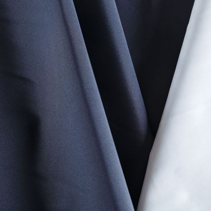 Плотная прочная плащевая ткань темно-синего цвета с полиуретановым белым покрытием с изнаночной стороны. Поверхность ткани матовая, ровная и гладкая. Подходит для изготовления плащей, курток, ветровок, бомберов, одежды для домашних питомцев, туристического снаряжения.