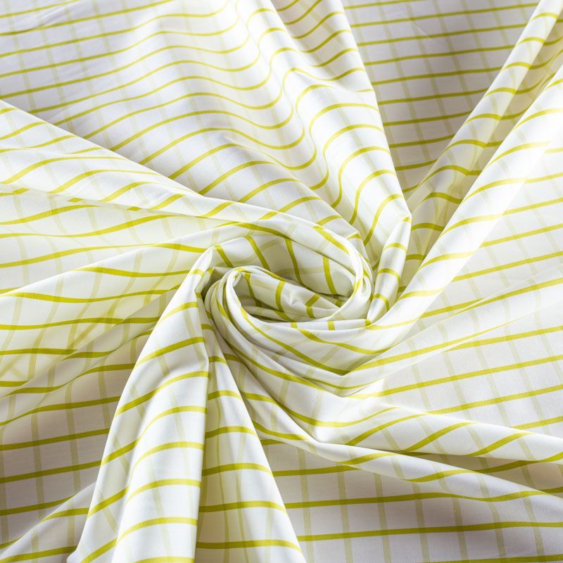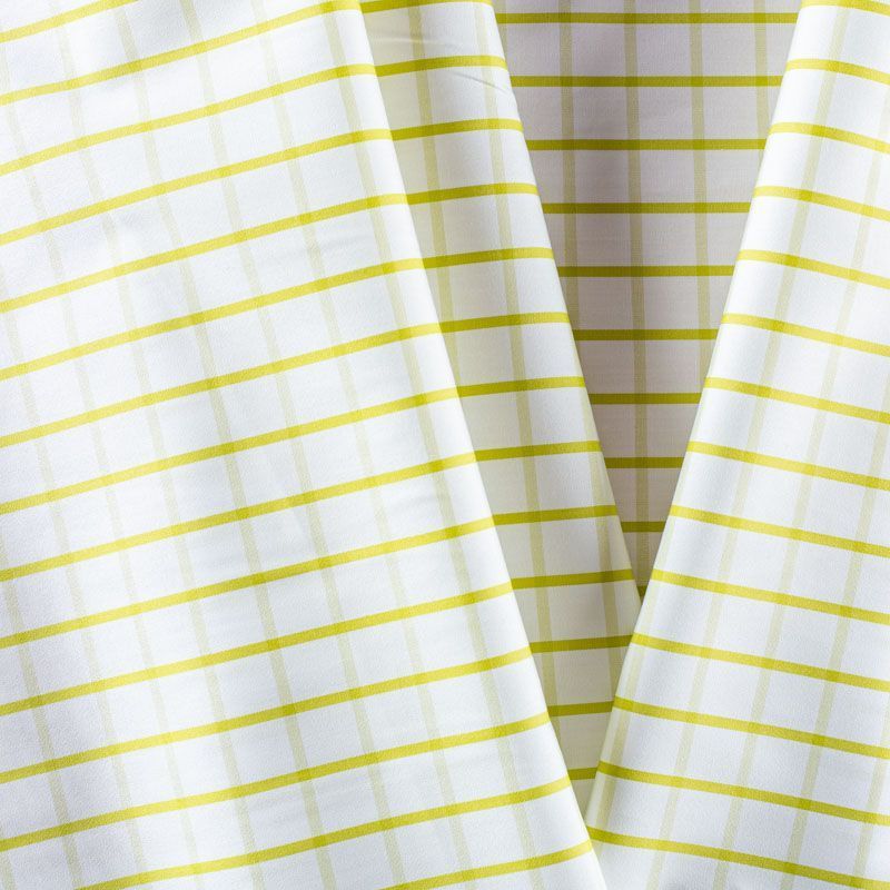 Итальянский плательно-рубашечный хлопок в белого цвета освежает клетка цвета лайма. Ткань мягкая, лёгкая, непрозрачная, пластичная и приятная к телу, хорошо драпируется, имеет гладкую матовую поверхность и сатиновое плетение. Прекрасно подойдет как для пошива платья-рубашки, сарафана, платьев различных фасонов, туники, топа, летнего костюма, комбинезона, мужкой и детской одежды.