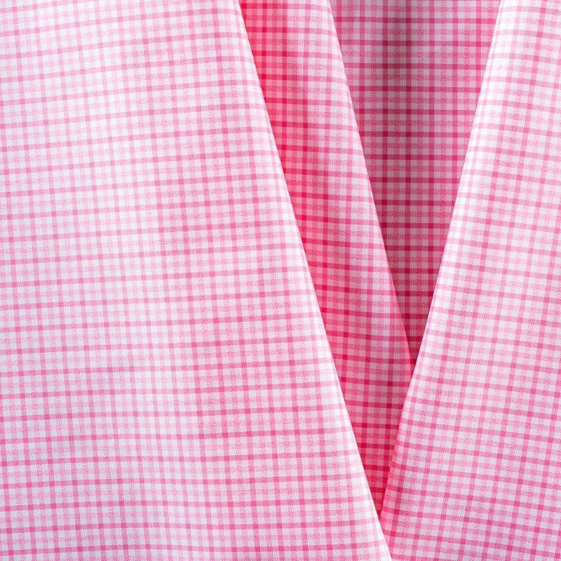 Итальянский плательно-рубашечный хлопок в розовую клетку. Ткань мягкая, лёгкая, непрозрачная, пластичная и приятная к телу, хорошо драпируется, имеет гладкую матовую поверхность и сатиновое плетение. Прекрасно подойдет как для пошива платья-рубашки, сарафана, платьев различных фасонов, туники, топа, летнего костюма, комбинезона, мужской и детской одежды.