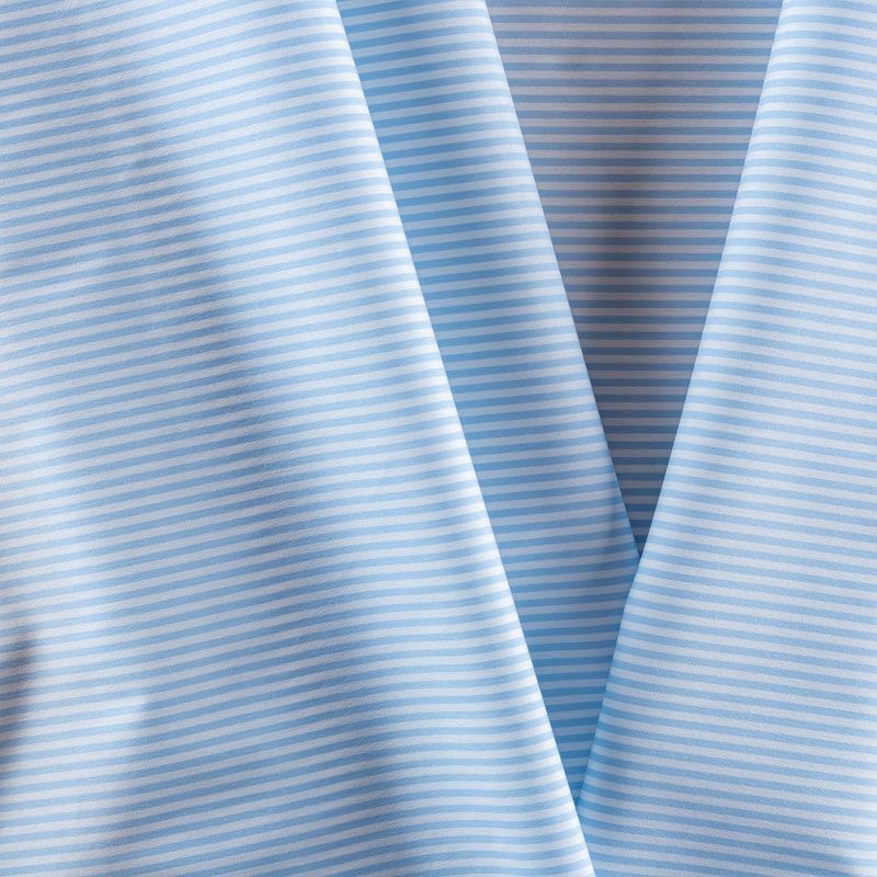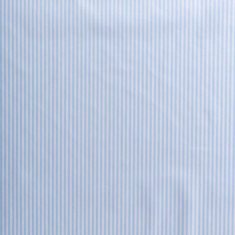 Итальянский плательно-рубашечный хлопок в частую узкую полоску голубого оттенка. Ткань мягкая, лёгкая, непрозрачная, пластичная и приятная к телу, хорошо драпируется, имеет гладкую матовую поверхность и сатиновое плетение. Прекрасно подойдет как для пошива платья-рубашки, сарафана, платьев различных фасонов, туники, топа, летнего костюма, комбинезона.