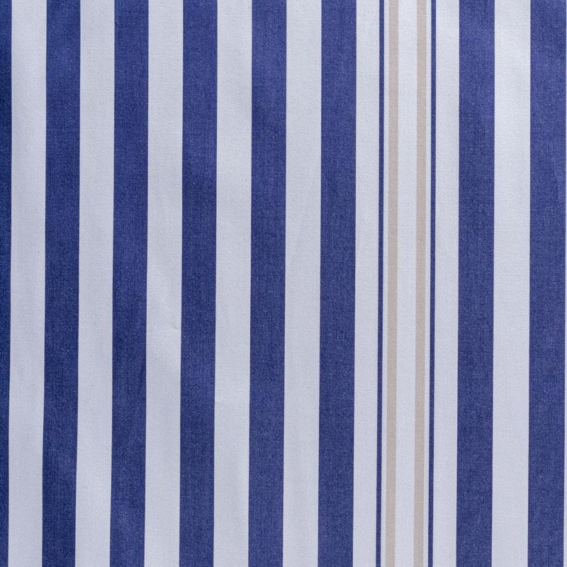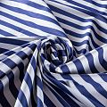 Итальянский плательно-рубашечный хлопок белого цвета в широкую синюю полоску. Ткань мягкая, лёгкая, непрозрачная, пластичная и приятная к телу, хорошо драпируется, имеет гладкую матовую поверхность и сатиновое плетение. Прекрасно подойдет как для пошива платья-рубашки, сарафана, платьев различных фасонов, туники, топа, летнего костюма, комбинезона.