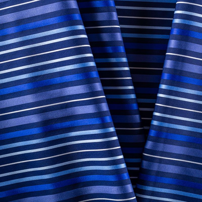 Итальянский плательно-рубашечный хлопок в полоску в сине-голубой гамме. Ткань мягкая, лёгкая, непрозрачная, пластичная и приятная к телу, хорошо драпируется, имеет гладкую матовую поверхность и сатиновое плетение. Прекрасно подойдет как для пошива платья-рубашки, сарафана, платьев различных фасонов, туники, топа, летнего костюма, комбинезона.
