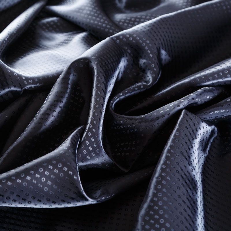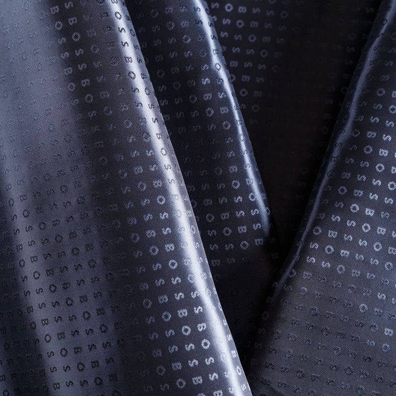 Итальянская подкладочная ткань из вискозы темно-синего оттенка с жаккардовым мелким узором и красивым блеском. Полотно легкое, не просвечивает, хорошо скользит, не тянется. Подойдет для изготовления таких изделий, как пальто, костюмы, куртка, шуба, платье, жакет.