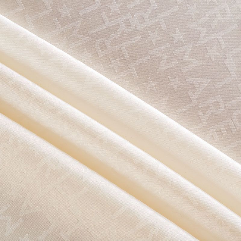 Итальянская подкладочная ткань молочного оттенка с жаккардовым узором и красивым лоском. Полотно легкое, не просвечивает, хорошо скользит, тянется за счет эластана в составе. Подойдет для изготовления таких изделий, как пальто, костюмы, куртка, шуба, платье, жакет, юбка, брюки, шорты.